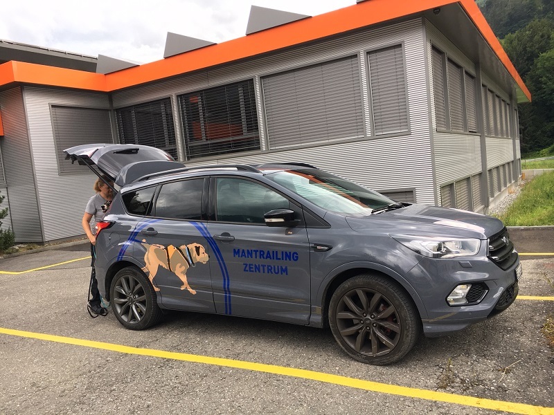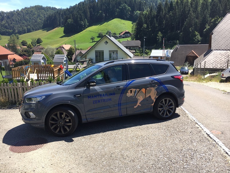 Der schnittige Ford Kuga von Joelle, Mantrailing Trainerin ist nun mit dem Logo beschriftet. Wir freuen uns sehr, ist das Mantrailing - Zentrum nun auch auf der Strasse unterwegs.