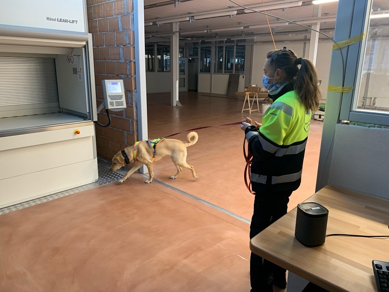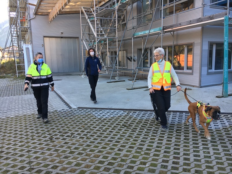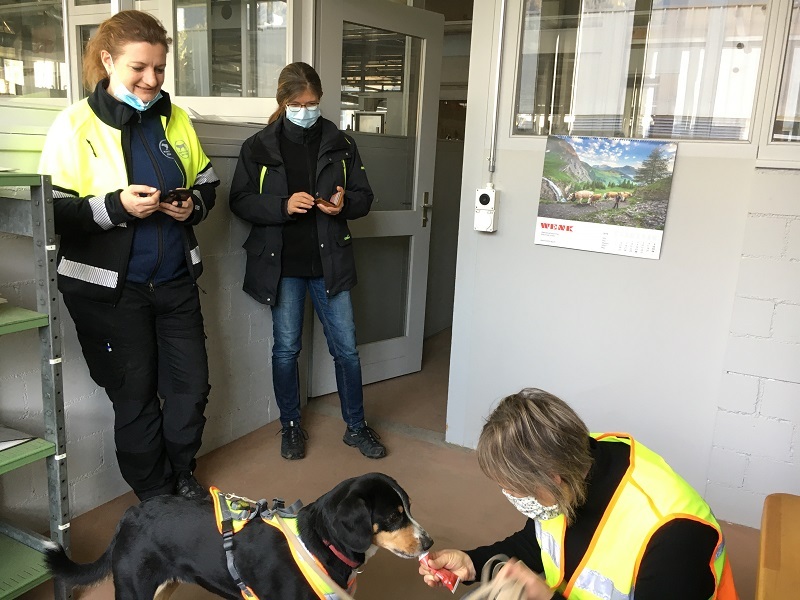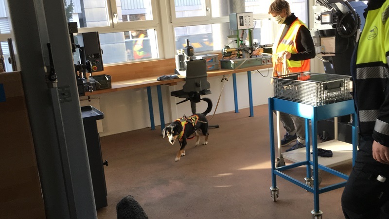 Die Mantrailing-Arbeit mit Durchgängen, Türen, Passerellen, Lichtverhältnissen und auch Untergründen ist spannend. Faszinierend ist immer wieder die Suche mit dem Lift, der entsprechenden Taktik, Vorgehen und Anzeigen.