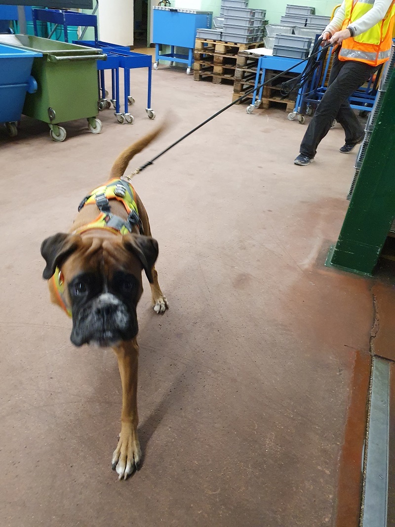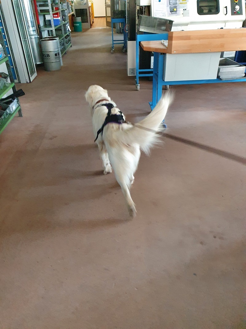 "Ich durfte gestern eine neue Erfahrung machen, Inndoortrailen in einer Fabrik. Es war spannend zu schauen, wie Noel damit umgeht. Enge Gänge, mehrere Etagen, viele Treppen und der Lift. Danke den Trainern vom Mantrailing Zentrum für das grosse Engagement die kompetente Betreuung und Schulung. Ich hoffe, dass es noch viele solche Trails gibt. Es het megagfägt.", Yvonne mit Golden Retriever Noel