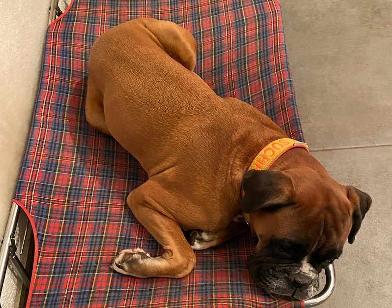 "Im - wie gewohnt kompetent geführten - Mantrailing-Indoor-Seminar vom 21.11.2020 konnten wir am Nachmittag die Theorie in die Praxis umsetzen. Mit dem vorgängig vermittelten theoretischen Wissen wo wir auf eventuelle Knackpunkte treffen könnten, wurden wir auf die Trails geschickt. Einmal mehr war ich tief beeindruckt, wie zielstrebig sich die Hunde durch die starken, ungewohnten Gerüche, schmalen Gänge, Nischen, Treppenhäuser und Lifte ihren Weg zur Zielperson suchten. Herzlichen Dank dem Team für die super Leitung und Organisation!", Ruth mit Boxer Rooney