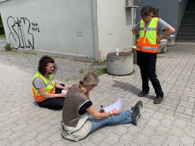 Bild: Briefing der Mantrailing Trainerinnen; v.l.n.r Joelle, Yvonne und Claudia