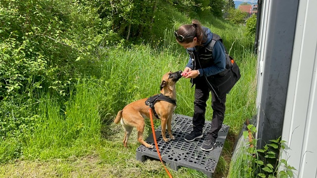 Für den Aufbau von einem Mantrailer gibt es verschiedene Methoden. Dabei gibt es aus unserer Sicht nicht richtig oder falsch. Unsere Teams bauen wir jeweils mit sogenannten Entdeckertrails auf. So lernt der Hund mit dem eigenen Instinkt, entdeckt das Mantrailing und arbeitet mit der nötigen Ruhe.