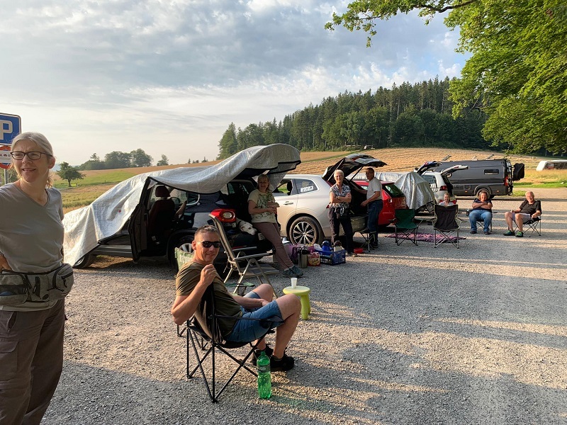 Das Konzept ist einfach: Man nehme tolle Mantrailer, bringe sie zu einem tollen Ort, bestelle beim regionalen Pizza-Kurier und traile im Anschluss in die Nacht hinein.